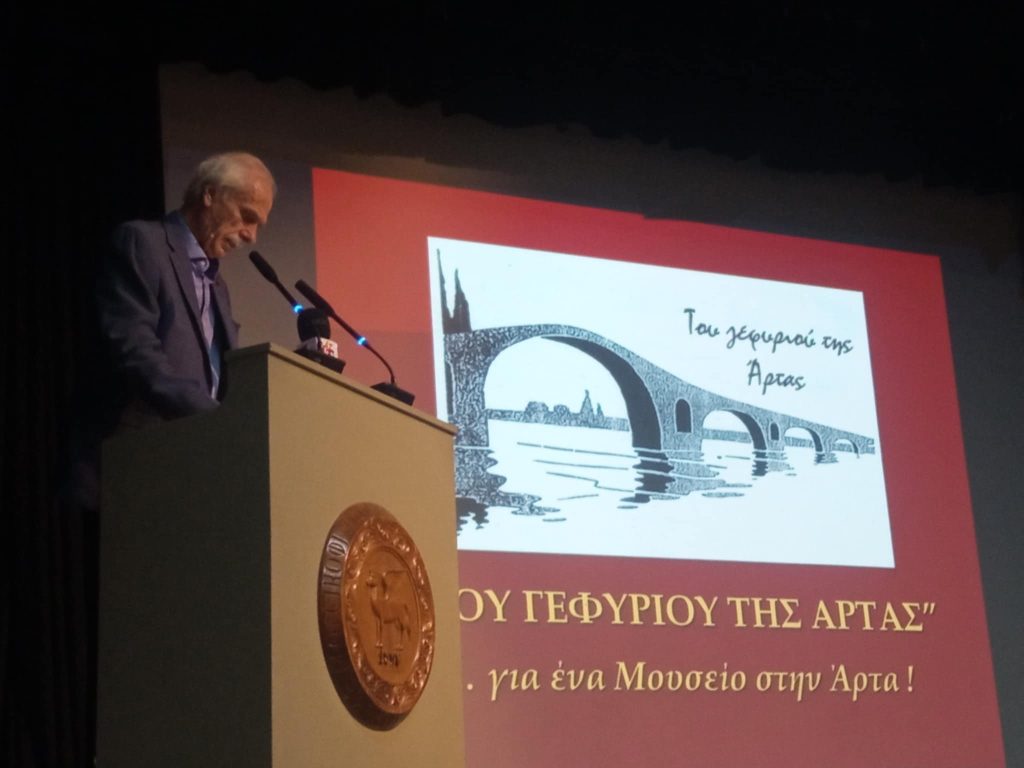 Ο κ. Μαντάς, κεντρικός ομιλητής της βραδιάς, παρουσίασε το υπό ίδρυση Μουσείο του Γεφυριού της Άρτας, αναφερόμενος τόσο στην ιστορία και τον θρύλο του μνημείου όσο και στα πολύτιμα τεκμήρια και εκθέματα που θα φιλοξενήσει. Τόνισε πως το νέο μουσείο δεν θα είναι ένας στατικός εκθεσιακός χώρος, αλλά ένας λειτουργικός και ερευνητικός οργανισμός, αφιερωμένος στη μελέτη των πέτρινων γεφυριών της Ηπείρου και της λαϊκής αρχιτεκτονικής.